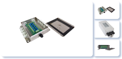 Caja sumadora de celdas de carga, o Caja de Juntas marca Lexus, diseñada para sumar las señales y enviarlas por un solo cable a el indicador. Las cajas de empalme cuentan con potenciometros con el fin de ajustar la sensibilidad de la celda y ajustar la excentricidad del sistema de pesaje. Disponibles en ABS de alta resistencia y acero inoxidable. Disponible de 4 hasta 10 celdas.